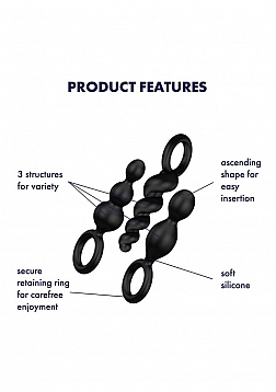 | Dimensions package | 15 x 15 x 4,80 cm | | Weight package | 185 gram | | Product weight | 127 gram | | Insertable length | 12 cm | | Waterproof | Yes | | Splashproof | Yes | | Phthalate free | Yes | | Specifications | Plug 1 L x W x H: 13,4cm x 4,8cm x 4,8cm Plug 2 L x W x H: 14cm x 4,8cm x 4,8cm Plug 3 L x W x H: 13,6cm x 4,8cm x 4,8cm | | Materials | Silicone |