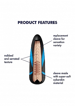 | Dimensions package | 8,30 x 6,80 x 20 cm | | Weight package | 390 gram | | Product dimensions | 7,9 x 6,6 x 21,8 cm | | Product weight | 302 gram | | Waterproof | Yes | | Splashproof | Yes | | Phthalate free | Yes | | Specifications | Replacement sleeve for Satisfyer Men One | | Materials | TPE |