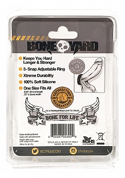 These must-have man toys are designed with superior materials and production thus increasing both comfort and lifespan. The powerful and iconic Boneyard-branded design has a sleek soft touch silicone finish and features a superior and durable stretch. The medical grade 100% silicone snap ball stretchers come with 3 snaps on one end and 1 on the other giving the wearer 3 sizing options to find the correct size.