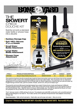 The powerful and iconic Boneyard-branded design has a sleek 5-hole silicone nozzle and features 2 different threaded adapters that fit most water bottles. The kit also comes with a hose adapter so you can use the nozzle on your favorite shower hose. Ideal for travel, on-the- go, and everyday use. You can be assured the Skwert will get you through the punishment of your longest play sessions time and time again.