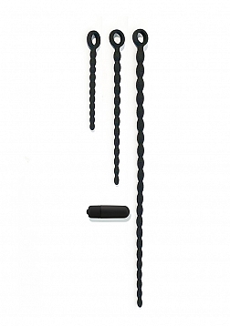 Vibrating Sounds is a sounding kit for the beginner to the advanced enthusiast. The kit includes three silicone sounding rods in graduated lengths and thicknesses. The beaded flexible sounds bend with the body, to make it easier to go deeper and hit your prostate. The beaded design allows lubricant to stay between the beads as you insert them, to make it easier to slide in without re-lubricating so often.