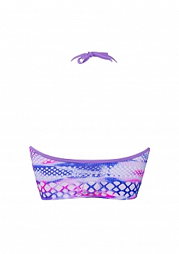 Cropped halter top with a strappy cleavage made of fishnet. Perfect to mix-and-match or to wear as part of a festival outfit. This top fits sizes S-XL. Add extra glamour to your face by adding the Dazzling Eye Sparkle Bling Sticker included with this top.