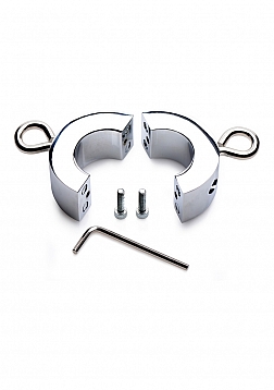 Indulge in intense ball-tugging play with the Ball Trap! Bring some heavy metal to your naughty activities and feel the satisfying stretch from this weighty ring. Designed to pull down on your sack with 11.6 ounces (220 grams) of weight, this metal ball stretcher is crafted for BDSM enthusiasts with a penchant for testicular play.