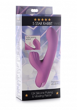 Get ready for the 5 star treatment with this premium silicone rabbit vibe! Designed for intense pleasure on both your clit and your g-spot - subtly curved to hit your sensitive spots just right, and packed with power with its internal dual motors. Perfect for use solo or with a partner!