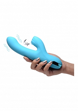 Choose from 3 clitoral pulsing patterns and 10 vibrating functions to stimulate your insides and your outsides! Control each function indepedently to mix and match sensations to match your unique preferences, or blindfold your partner and keep them guessing with different sensations as you go. Feel the velvety tip rub against your g-spot while the turbo thumping clitoris stimulator sends you over the edge to blended orgasm heaven!
