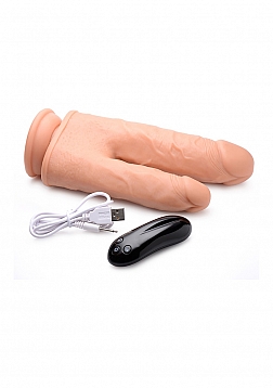 Get hit with a double shot of pleasure and then amp it up with turbo mode, a unique lightning strong vibrating mode. 10 intense rotating & vibration patterns with turbo mode 7 vibrating patterns 3 escalating speeds speeds Liquid Silicone Feels Super Soft and Life-Like Ultra Realistic Design with Perfectly Sculpted Features Strong Suction Cup Base Sticks to Almost Any Flat Surface Harness Compatible Low Maintenance and Easy to Clean