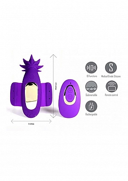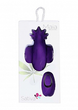 Sativa is a 10 function panty vibrator with a remote control. It has a Cannabis Leaf theme, is waterproof, rechargeable and fits most panties.