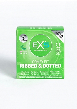 EXS Ribbed and Dotted condoms are 56mm wide with a comfy flared teat end. This EXS condom is ribbed and dotted for extra stimulation for your partner. EXS ribbed and dotted have no latex smell and are made from a thin yet strong silky latex.EXS ribbed and dotted condoms are vigorously tested to the European standards and by the British Standards Institute (BSI)