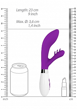Agave offers a delicious extra: 4 tantalasing extensions on the clitoral stimulator. This rabbit-style vibrator will take you on a magnificent trip to orgasm heaven! Offering 10 different speeds (at 5200rpm!), this vibrator will help you achieve unbelievable pleasure. With little to no sounds (<50DB) this beautiful toy can be safely used in private. Made from smooth, phthalate-free, medical-grade silicone and ABS the Agave stands 23,1 cm (9,1") tall, has an insertable length of 13,9 cm (5,5") with a diameter of 3,6 cm (1,4"). This beautiful toy is rechargeable via the enclosed USB cable. A 30-minute charge will give you 60 minutes of delicous playtime!