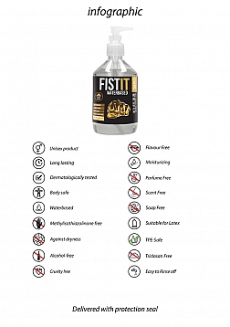 Fist It is a water-based lubricant. Suitable for use with latex condoms. Dermatologically tested, fat-free, colourless, odourless and tasteless. Directions for use: Apply as much gel as you want on the body part that you want and repeat as often as you like. Keep out of reach of children. Store in a cool, dark place.