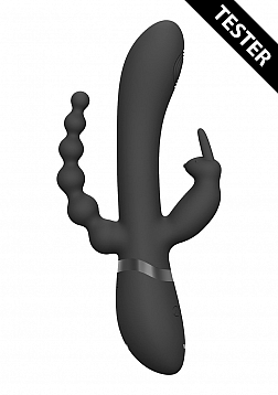 VIVE-RINI Rechargeable Pulse-Wave Triple Motor Silicone Rabbit - Black..