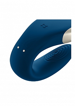 Double Love, our luxury couples vibrator, features thrilling soft silicone combined with high-quality precious metal. Doubly paired with a convenient wireless remote and our high-tech App, long distance play is possible and the options endless! Enjoy a breath of fresh air while making love with the Satisfyer Double Love! The couples vibrator with 2 motors will impress you with its classic U-shape, which stimulates both partners with powerful vibes. The slightly curved shaft is inserted vaginally and simultaneously stimulates the G-spot as well as the penis, while the upper part titillates the clitoris. The body-friendly silicone also seduces you with its smooth feel. The Satisfyer Double Love also has a lot to offer optically: The sophisticated details made of high-quality, real metal lend your lovemaking a touch of luxury. The Satisfyer Double Love can be controlled with the included wireless remote control as well as with the free Satisfyer Connect App. You can discover new facets of your love life together using the app: In addition to controlling your device remotely, you can also create your own vibration programs or have audio and video chats. What are you waiting for? The couples vibrator is waterproof (IPX7) so it can also enrich your love life in the shower or bathtub with its hot vibrations. If your couples vibrator ever runs out of steam, you can recharge the integrated batteries with the included USB charging cable.
