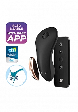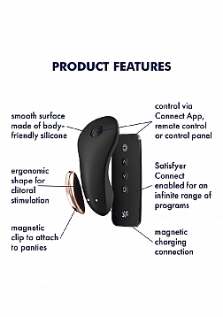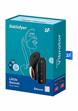 Satisfyer Little Secret: Panty vibrator with remote control and app control The Little Secret from Satisfyer is a real everyday hero: You attach the clit vibrator to your panties with a magnetic clip, making it ideal for sensual stimulation on the go. The panty vibrator comes in sophisticated black with gold-colored details and lies directly on the clitoris thanks to its ergonomic shape. The powerful but whisper-quiet vibrations mean your Little Secret is also absolutely discreet. It has an impressive, soft surface made of body-friendly silicone that will provide you with a smooth experience with just a few drops of lubricant. And the fun doesn't have to stop in the shower or bathtub because the Little Secret has a waterproof (IPX7) finish.