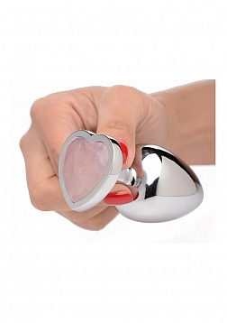 Key Features: Genuine Heart-Shaped Rose Quartz Gem: Purify and open your heart; the alluring pink Rose Quartz promotes romance and encourages self love for more fulfilling personal time Comfortably Weighted: Add a downward pull to your hole for additional stimulation and pleasure thanks to the weighty nature of these metallic butt plugs Nickel Free Aluminum Alloy: The aluminum alloy material provides a deliciously hard and smooth mass for your ass to squeeze; compatible with most lubes Great For Temperature Play: Warm or chill this gemstone butt plug in a bowl of water to add another layer of sensation while you play; perfect for veteran butt plug users looking for a new way to play