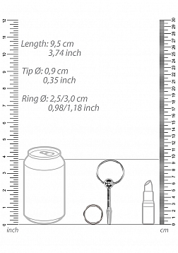 The strong metal give this sounding a tough look, and makes it easy to insert into the urethrae. Are you a urethral discoverer, or are you curious about this? The O-ring makes for easy extraction, and great play. Sounding is exciting, because it’s fairly unknown, different, risky and non-traditional. The urethra passes by particularly sensitive areas in the penis head and the G spot. Sounding stimulates these nerves directly, offering a great sexual impulse for those who dare. Remember: inspect / wash / sanitize / sterilize. Play safe!