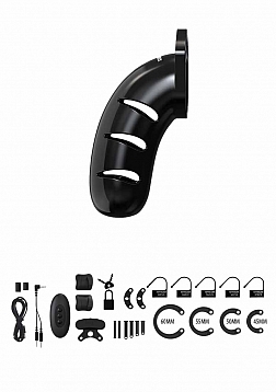 The Man|Cage Chastity Cages are manufactured from high-grade polycarbonate, a very light, durable and hypoallergenic material. The cage consists of three parts which fit perfectly together. The two guidance pins connect the top parts and the oval taper pin connects the rings with the cage. A variety of rings in different sizes and distance pieces will allow you to create the perfect size! The rings have a comfortable fit and are absolutely safe. A metal lock or tie-wrap lock can easily close the cage. The included tie-wrap locks ensure that they will not trigger the alarm of metal detectors at parties, festivals or even airports! As hygiene is very important while wearing a cage, the superior Man|Cage series are equipped with a variety of vents and a urination opening. The cage makes it impossible to get an erection but it will be, after liberation, super intense, just like the freeing orgasm to follow! The Man|Cage Chastity Cage gives the key-holder optimal power over sexual gratification!