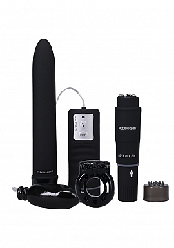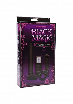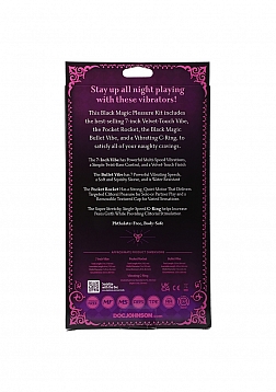 Stay up all night playing with these vibrators! This Black Magic Pleasure Kit includes the best-selling 7-inch Velvet-Touch Vibe, the Original Pocket Rocket, the Black Magic Bullet Vibe, and a Vibrating C-Ring, to satisfy all of your naughty cravings.