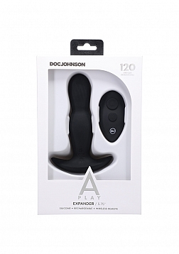 The A-Play EXPANDER is a premium anal plug that can both vibrate and expand while inside you. It's conveniently controlled directly on the product or via the included wireless remote. A-Play is Doc Johnson's high-end line of performance anal plugs, created with a variety of sizes and special features to promote anal pleasure and exploration for users of every experience level. Each product in the A-Play collection is USB-rechargeable, water-resistant, and includes a charging cable and fabric storage bag.