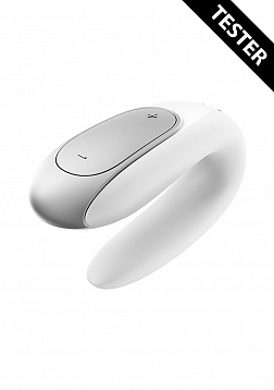 Product information "Double Fun"Our Double Fun powerfully stimulates both partners during sex. The U-shape is fitted both inside and outside - ensuring a seductive feeling for the clitoris, G-spot, and penis. App enabled, this high-tech toy is enhanced with remote play and more!What can the Satisfyer Double Fun couples vibrator do?The Satisfyer Double Fun will enrich your love life with powerful vibrations that stimulate both of you sensually. The classic U-shape couples vibrator is worn during lovemaking and stimulates the entire penis as well as the G-spot with its insertable shaft. The second motor is hidden at the other end of the couples vibrator and stimulates the clitoris at the same time. The couples vibrator is made of body-friendly silicone, which feels especially soft on the skin. Your fun together can also continue in the shower or bathtub: Thanks to its waterproof (IPX7) finish, the Satisfyer Double Fun is the ideal companion for wet and wild pleasure. If your device ever runs out of steam, you can recharge the integrated batteries with the included USB charging cable.Couples vibrator with remote control and app controlIt’s also intuitive to control: The various vibration programs can be controlled via the control panel on the couples vibrator itself, via the included wireless remote control or via the Satisfyer Connect App. You can discover even more upgrades for your lovemaking with app: You can create your own vibration programs, take control of your partner's Satisfyer or link your account to Spotify and more - there’s a lot to discover! The app is free and available for Android, iOS and Apple Watches.
