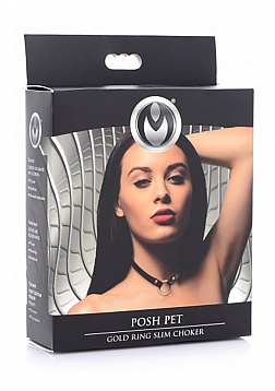 A posh and elegant choker for subs who like to show off some style! This light weight choker is thin, soft, and adjustable for comfort and long term wear so you or your sub can display your affection without discomfort. The gold ring is crafted to stand out, but is subtle enough to be worn around the town with confidence!