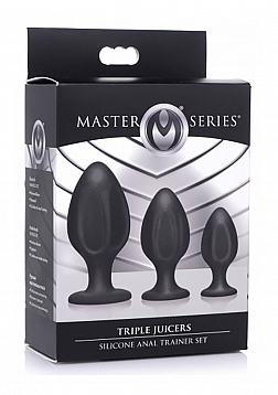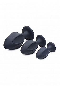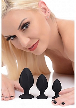 Three juicy anal plugs for all levels of backdoor play! Uniquely shaped for a provocative fill - the star shaped body provides high peaks and deep valleys for your backdoor to squeeze and enjoy. The cushy and squeezable silicone body provides an addicting fill, while the graduated sizing from small to large makes this trio perfect for all skill levels.