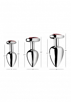 Decorate your derriere with this trio of Ruby Anal Hearts! Graduating in size from small to large to make it easy for all anal skill levels to enjoy these weighty, metal delights. Add a ruby red flash to your ass during foreplay as a warm up for the anal main event, or simply as a visual teaser for your lover to enjoy while you bend over!