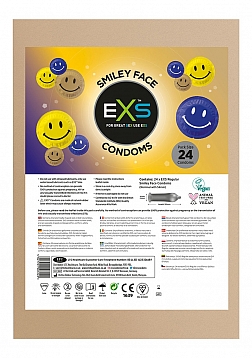 EXS Smiley Face pack of 24 condoms - A mix of 3 designs - Can fit through a letter box! - 56mm width flare and teat ended for extra comfort
