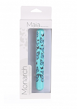 Float like a butterfly and lift your orgasms with silky soft wings with the Maia Novelties Monarch. This 10-Function Rechargeable Bullet Vibrator is coated with silky soft Silicone that is 100% body safe. The Butterfly print design belies a soft yet powerful motor. The long, slender design allows for easy handling and multiple uses while the end position control button allows for easy speed change.