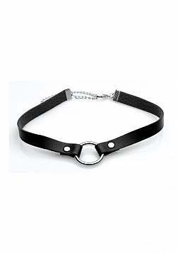 This elegant collar is a great accessory for any outfit. Subtle and refined, it can be worn during the day during work or at night with a lover. The silver O-ring is a subtle and beautiful accent on this black, PU leather collar. With adjustable clasps, this collar can be adjusted to the perfect fit.