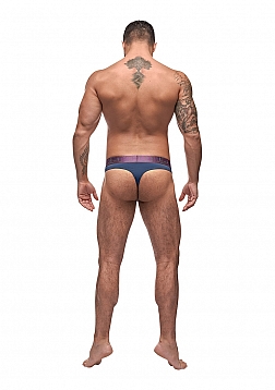 From the Avant-Garde collection by Male Power, this style includes: An enhancer thong featuring a supportive enhancing pouch, a silky smooth, luxurious finish, and an innovative, collage-text, branded waistband.