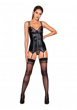 MaterialsGARTER SLIP AND TEDDY LACE - 90% NYLON 10% SPANDEX, FAUX LEATHER - 95% POLYESTER 5% SPANDEX (EXCLUSIVE OF DECORATION)