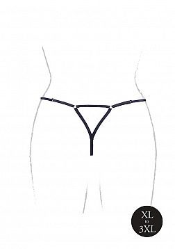 • Julie - Elastic Mesh Thong with Open Crotch , Adjustable Sliders and Golden Details - Plus Size