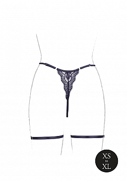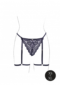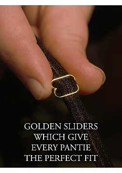 Marie - Lace Thong with Garter, Adjustable Sliders and Golden Details - One Size