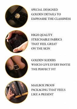 • Marie - Lace Thong with Garter, Adjustable Sliders and Golden Details - One Size