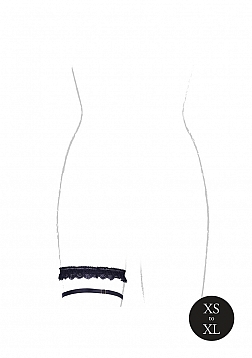 This garter is a little extra, just as you are. The top garter is made of lace, but there's a second strappy garter applied to it. Combining sweet, with sexy. The material is stretchable and the straps are adjustable. So, no matter your shape, it will fit perfectly.