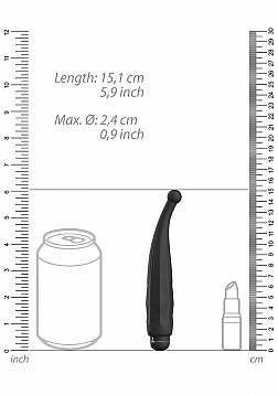 | Dimensions package | 17,10 x 5 x 3,30 cm | | Weight package | 75 gram | | Product dimensions | 2,4 x 2,4 x 15,1 cm | | Product weight | 45 gram | | Product diameter | 2,4 cm | | Quantity motors | 1 | | Rotations per minute | 14500 RPM | | Speed modes | 10 | | Multi speed | Yes | | Noise level | 60 dB | | Batteries required | 1 | | Batteries type | AAA | | Batteries included | No | | Splashproof | Yes | | Phthalate free | Yes | | Materials | Silicone, ABS |