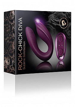 Timeless and instantly recognisable Rock Chick Diva 's Iconic lines and imperssive power embraces unrivalled performance to take you to another level of ograsmic passion. Expertly fine-tuned to fire up, Diva has been crafted to heighten Clitoral and G spot stimulation giving you the perfect blended, ermote controlled and handsfree orgasm. Powerful, dual independent motors sit within the ergonomic stimulation points whilst the flexible velvet touch siclione niches firmly to your body as you rock yourself into divine climax. Enjoy Diva on your own or hand over the power control to your partner to decide what your passion will be. With so much versatility and powe,r it is no surprise that Diva will be your ultimate encoer.