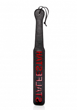 Leave a lasting impression on your partner. This short handled rectangular shaped crop is the perfect way to discipline your partner. Leave a lasting impression on your sub. The word HATSEFLATS is reversed so it will show up on their skin