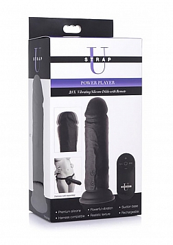 The Power Player is powerful on its own, but really shines when strapped into your favorite harness! The luscious silicone body is super plush, velvety smooth, and adorned with realistic detailing for a genuine feel. The powerful suction cup base secures this dildo to any smooth and flat surface, and makes the Power Player compatible with most strap-on harnesses. Add a powerful buzz to your hip movements - the Power Player comes equipped with 4 speeds and 7 patterns of vibration for a wide variety of sensations and intensities! Flip through and explore which functions best suits the mood for the night with the included wireless controller, perfect for convenient solo use or with a partner to change functions without interupting the sexual rhythm. The Power Player is rechargeable via the included USB charging cable for infinite playtime! The IPX7 waterproofing also makes this sulty silicone shaft easy to care for and shower friendly for steamy strap on sessions. Made with silky smooth, phthalate free silicone for a premium body-safe, worry free experience. Compatible with water based lubricants only!