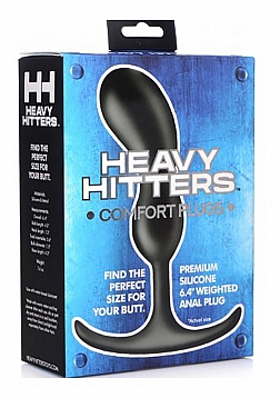Take a Heavy Hit to your backdoor - this curved comfort plug is crafted to fill your ass and rub your prostate with its velvety exterior and heavy metal weightiness! This premium butt plug is ergonomically shaped to fill your booty with two bulbs, each featuring an internal metal weight to add a solid mass for you to squeeze and a delicious downward pull on your hole. The plush, velvety exterior is constructed with premium silicone that is phthalate free and body safe for a satisfying, worry-free backdoor fill! The slim base and neck is easy on your hole and your buttcheeks for even more comfort when you manage to fit this whole plug into your body. Compatible with water based lubes only.