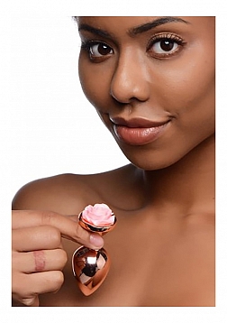 Enjoy this gorgeous rose-gold anal plug topped with a delicate, pink flower! Treat your booty like a shrine and adorn it with the most beautiful plug for your own delicate, pink flower. The nickel-free aluminium has a comfortable weight that pulls gently down against your backdoor. Play with temperature and sensations by heating or cooling the plug in hot or cold water before insertion. The tapered end and smooth metal make insertion easy and comfortable. Use any type of lubricant with this plug and enjoy both the look and feel of this beautiful plug! After use, simply wash with warm water and antibacterial soap and then dry with a soft cloth.