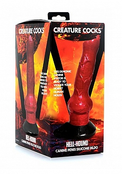 Pounce into playtime with this Hell-Hound Canine penis! The large, red dildo has bulbous testicle glands in a knot above the base, thick veins along the shaft, a concave head with pointed tip and a sturdy black base. Enjoy hands-free by using the strong, suction-cup base against a wall or flat surface or pair it with a strapon harness for pegging play! Use only with water based lubricant. Made of premium silicone, it is body safe and phthalate-free. The Hell-Hound is coming from you, and you can hear their snarling, wet growls and aching moans. Their teeth are at your throat as they pin you down to breed you, the long, red rocket dripping wet and penetrating your holes. Feel them push you into their long, thick phallus and stretch you, pulling you down to the hilt. See how deep you can get as they knot inside you! Whether you play the Hell-Hound and deliver each fierce stroke yourself, or you ride the dildo hands-free using the suction cup base, enjoy the fantasy delivered with this realistic, Hell-Hound Canine penis! After play is over, wash the dildo with warm water and soap and use a toy cleaner to spray clean. Wipe dry and store in a cool, dark place out of direct sunlight.
