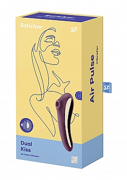 Get ready to kiss your old lover goodbye and say hello to the Dual Kiss! Offering both internal sensations and our award-winning Air-Pulse technology, the Satisfyer Dual Kiss is ideal for those seeking a 2-in-1 solution. With a slightly curved shaft, experience targeted g-spot arousal with your new Dual Kiss. On the other end of this versatile lover, find precise Air-Pulse pressure waves, sure to send you into pure bliss. The Dual Kiss comes equipped with two, independently controllable, motors with 10 vibration programs and 11 pressure wave intensities. Made of body safe silicone, the Dual Kiss is rechargeable. It is IPX7 Waterproof rated and ready for a deep dive! Experience new feats of pleasure with your all-new Dual Kiss.