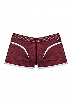 From the Sport Mesh collection by Male Power, the Sport Mini Short, features a stay put fabric covered waistband with a logo'd MP tag. Plush elastane sporty striping highlights the front, rear and legs