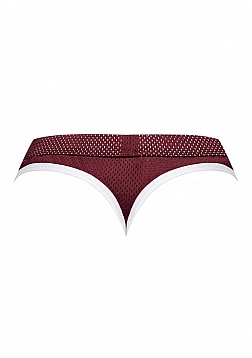 From the Sport Mesh collection by Male Power, the Sport Thong, features a stay put fabric covered waistband with a logo'd MP tag. Plush elastane sporty striping highlights the front, and one inch rear t-back.