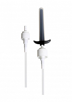 The Buck'd Lube Injector quickly converts most lube bottles into a lube injector and makes lubrication much easier. The injector which is great for trans men because of the dryness sometimes caused by the use of testosterone and the resulting imbalance in hormone levels. It's also something that many women going through menopause can benefit from if they are experiencing vaginal dryness. The 4" (10cm) interchangeable plastic injector comes with a small and large lube bottle cap. The injector has comfortable finger pump holds, that lets you inject the perfect amount of lubricant with no back flow. The injector also comes with a sanitary storage/travel cap. The hose attachment can be cut to fit multiple size bottles.