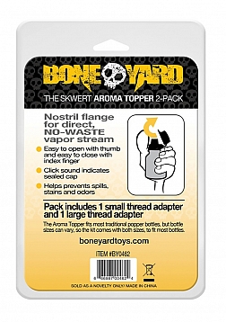 The Aroma Topper is an ABS plastic flip top that converts popper bottles into a single-handed open-and-close cap. It comes in two sizes, small and large, and fits most brands on the market. The top is easy to open and close with the thumb and features a nose cone that makes it easy to fit to your nostril. There is also a click sound that indicates to the user that the cap is closed so you can avoid spillage and odors which reduces the chance of ruining your sheets or clothing. It also useful during intercourse since it is attached directly onto the bottle and you don't have to worry about finding a small cap that can be easily lost after removal.