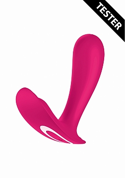 CONFIDENTIAL! TOP SECRET INFORMATION FOLLOWS: The Top Secret wearable vibrator features a flat, ergonomic base, allowing for maximum comfort, as well as a ridged shaft for clitoral stimulation. Ergonomically curved to perfectly hit the G-spot, experience strong vibrations throughout due to the drop-like shape! Bluetooth enabled, the Top Secret connects to the award-winning, free, Satisfyer Connect app, giving you the option to take control of your pleasure and start your journey while on the go. The Top Secret is made of body safe silicone, is rechargeable, and is IPX7 Waterproof rated. Can you keep the secret?