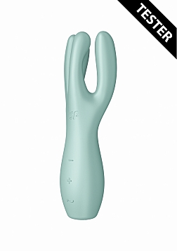 Be the connoisseur of your pleasure! This versatile take on a Lay-on vibrator comes equipped with a firm body and flexible arms for ideal clitoral and labia stimulation. Welcome to Threesome 3! Adjust the flexible arms to stimulate multiple different erogenous zones with ease. Experience broad and targeted stimulation with arms built to hit all the right spots! Use the smaller, rounded, arms for centered stimulation. With 3 powerful motors, one located in each arm, choose from 12 different vibration programs easily through the intuitive control panel. Use the +/- buttons to control the programs of the outer arms, and the ~ to control the middle arm. The Threesome 3 is made of body-safe silicone, is rechargeable and waterproof (IPX7). The threesome you never knew you neededÂ…