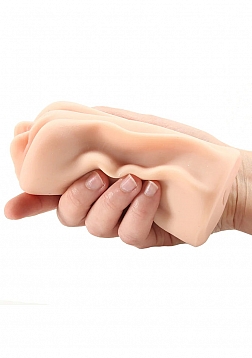 Starting off with a perfect replica of Autumn's pussy, the plushy, squeezable interior is bouncy and clingy, gripping tight all the way through a multi-textured inner tunnel. It warms up naturally as you stroke away, but for a hot touch right from the start, just soak it in some warm water first. Open ended, Autumn is easy to clean. For a natural suction effect, cover the back opening with a finger to feel her suck you deep inside.